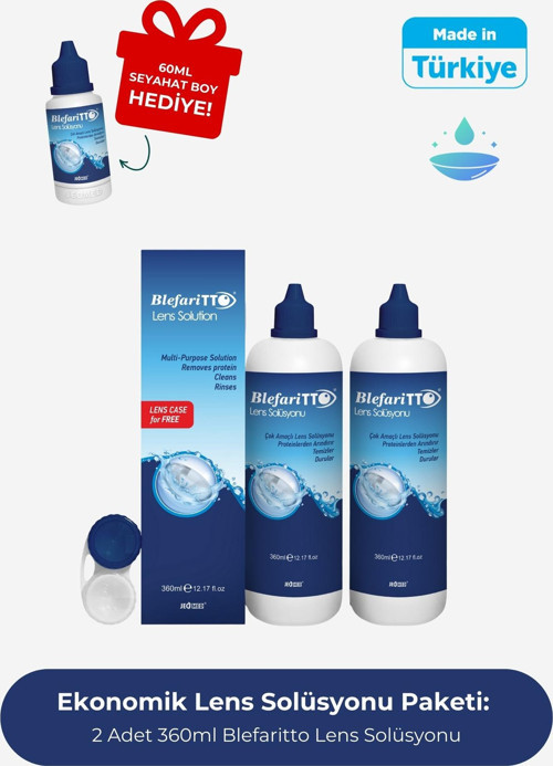 Blefaritto 360 ml 2 Adet Lens Solüsyonu Çanta Boy 60 ml Çanta Boy Hediye Son Kullanım Tarihi: 01.2027
