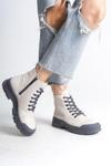 BLOOM Bağcıklı Fermuarlı Ortopedik Taban Kadın Bot  CGT - Krem