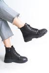 Joy Ayakkabı BLOOM Bağcıklı Fermuarlı Ortopedik Taban Kadın Bot CST - Siyah