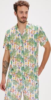 Bloom Beyaz Baskılı Erkek Gömlek