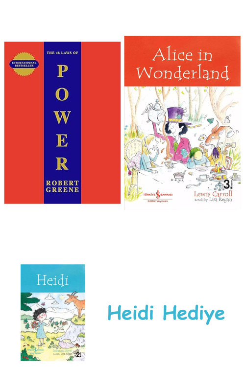 The 48 Laws Of Power + Alice in Wonderland + Heidi Siparişleriniz, kargo sürecinde zarar görmemesi için dikkatle paketlenerek gönderilir.; Dilerseniz hediye paketi seçeneğinden faydalanabilirsiniz.; Ayrıca sevdiklerinize özel bir sürpriz yapmak isteyen müşterilerimiz için kişiye özel hediye notu hazırlanabilmektedir.; Hediye paketi ve not taleplerinizi sipariş esnasında belirtmeniz yeterlidir.; Ürün görsellerinde ve açıklama kısmında belirtilen tüm ürünler eksiksiz ve belirtilen şekilde gönderilmektedir.; Müşteri memnuniyeti önceliğimizdir.; Ürünle ilgili her türlü soru, talep ve destek için Ürün Sorusu bölümünden bizimle iletişime geçebilirsiniz.