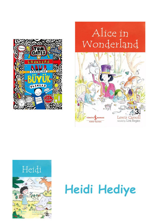Tom Gates 14 - Şarkılar, Abur Cuburlar ve Büyük Planlar + Alice in Wonderland + Heidi Siparişleriniz, kargo sürecinde zarar görmemesi için dikkatle paketlenerek gönderilir.; Dilerseniz hediye paketi seçeneğinden faydalanabilirsiniz.; Ayrıca sevdiklerinize özel bir sürpriz yapmak isteyen müşterilerimiz için kişiye özel hediye notu hazırlanabilmektedir.; Hediye paketi ve not taleplerinizi sipariş esnasında belirtmeniz yeterlidir.; Ürün görsellerinde ve açıklama kısmında belirtilen tüm ürünler eksiksiz ve belirtilen şekilde gönderilmektedir.; Müşteri memnuniyeti önceliğimizdir.; Ürünle ilgili her türlü soru, talep ve destek için Ürün Sorusu bölümünden bizimle iletişime geçebilirsiniz.