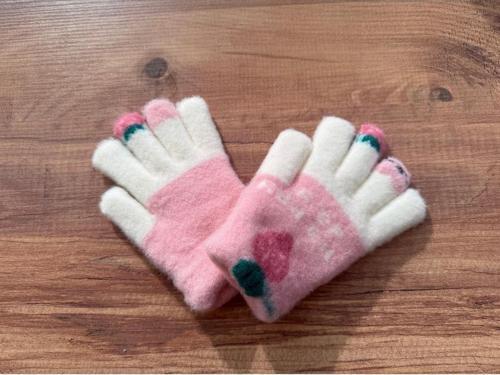 Blotch Çift Katlı İçi Havlulu Akrilik Elyaf Kız Çocuk Çilek Detay Pembe-Krem Renk Yün Eldiven 3-6 Yaş Arası