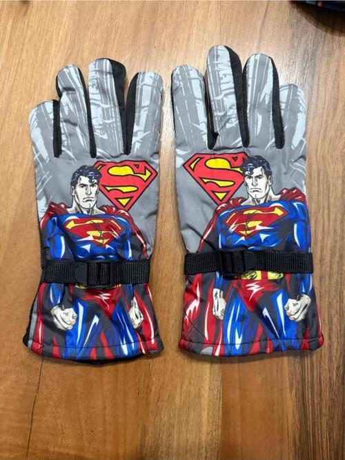 - 6-10 yaş arası çocuklar için ideal, süpermen temalı tasarımıyla dikkat çeken su geçirmez siyah renk astarlı çocuk kayak ve kar eldiveni.