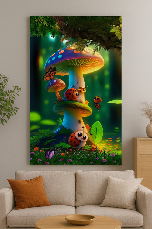 - Tek parça halinde gelen bu cam tablo, masalsı orman temasıyla göz alıcı bir atmosfer yaratır.