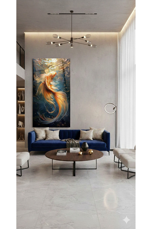 - Doğanın zarif dokunuşunu evinize taşıyan şans balığı temalı cam tablo, doğal ve estetik bir atmosfer yaratır.