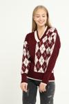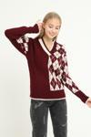 Kadın Baklava Desen Detaylı, V Yaka Kazak