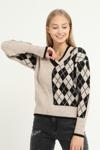 Kadın Baklava Desen Detaylı, V Yaka Kazak