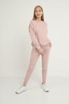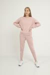 Klasik ve zamansız tasarımıyla her ortama uyum sağlayan düz desenli kadın bisiklet yaka triko takım