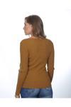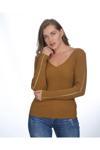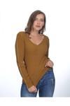 Blue Petrol Kadın Fitilli Görünümlü Kol Detaylı Vücudu Saran V Yaka Bluz-Kazak