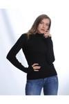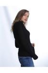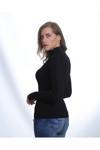 Blue Petrol Kadın Fitilli Vücudu Saran Kolları Tüy Detaylı Balıkçı Yaka Bluz-Kazak