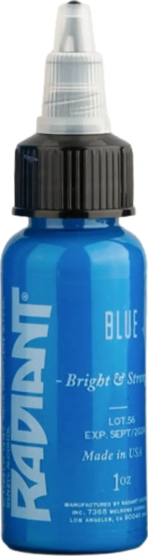 Dövme sanatında sonsuzluk ve derinlik arayanlar için Blue Radiant, okyanusun ve gökyüzünün en saf mavi tonlarını cilde taşıyor. Radiant Colors'ın yüksek pigmentasyon teknolojisiyle geliştirilen bu renk, sıradan mavilerin ötesine geçerek en iddialı tasarımlarda bile kendini belli eden, "hipnotize edici" bir canlılık sunar.