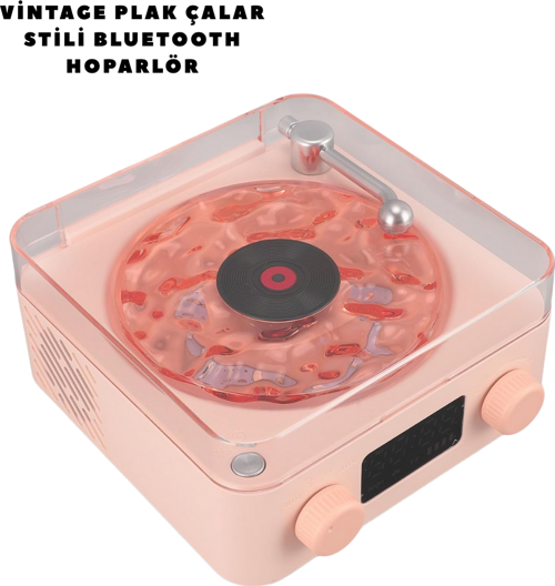 Şık tasarımıyla dikkat çeken bu hoparlör, teknolojiyi klasik tarzla birleştirir. Stereo ses sistemi, kristal netliğinde müzik keyfi sunarken gece ışığı özelliğiyle huzurlu bir atmosfer sağlar. Dijital zaman ve pil göstergesi, günlük kullanımda kolaylık sağlar. Kompakt boyutuna rağmen güçlü ses çıkışıyla fark yaratır. Sevimli plak çalar tarzı, her ortama uyum sağlar ve özel günler için zarif bir hediye alternatifi oluşturur.