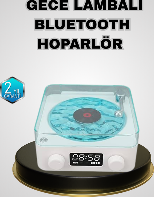 Vintage plak çalara benzeyen zarif tasarımı, ürünü dekoratif bir obje hâline getirir. Şeffaf yüzeyindeki estetik ışık oyunları ve retro-modern birleşimi, cihazı hem klasik hem modern dekorasyonlara uyumlu kılar. Hem genç odalarında hem yetişkin yaşam alanlarında şık bir tamamlayıcı olarak kullanılabilir. Ayrıca hediye olarak da oldukça popüler bir seçenektir çünkü hem fonksiyonel hem de göze hitap eden bir tasarım sunar.