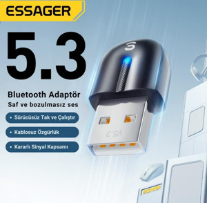 Essager Bluetooth Vers.5.3 USB Bluetooth Adaptör USB Bluetooth 5.3 Wireless Adaptör Tak Çalıştır