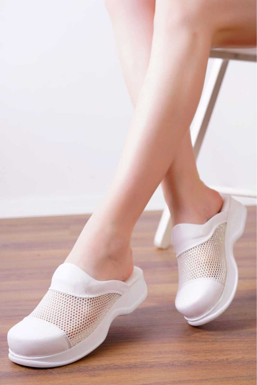 Blum Sabo Terlik Beyaz Özel Tasarım Fileli Sabo Ortopedik Hemşire-Doktor-Sağlık-Anaokulu-Güzellik Merkezi Terliği