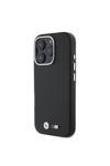 Bmw İphone 16 Pro Max Kılıf Lisanslı Tam Sarılmış Kevlar Tasarım Metal Logo Suni Deri Siyah