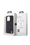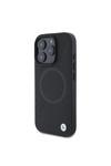 Bmw İphone 16 Pro Uyumlu Kılıf Bmw Lisanslı Magsafe Özellikli Metal Logo Yarım Dokulu Circle Deri Siyah