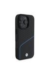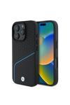 Bmw İphone 16 Pro Uyumlu Kılıf Lisanslı Magsafe Özellikli Metal Logolu Dokulu Ve Çizgili Deri