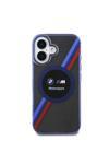 Bmw İphone 16 Uyumlu Kılıf Lisanslı M Logolu Üç Renk Çizgili Motorsport Circle Kapak Siyah