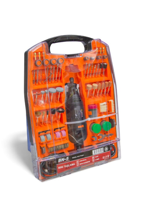 Ürün Tipi: Çok Amaçlı Mini Taşlama / Gravür Makinesi Seti Model No: BN-5 PT3601 Güç (Watt): 125 W Giriş Voltajı: 230V / 50Hz Devir Hızı (RPM): 8.000 – 33.000 Devir/Dakika (Ayarlanabilir) Hız Ayarı: Var (6 kademeli ayar) Pens Çapı (Uç Kalınlığı): 3.2 mm (Standart Hobi Uçları ile uyumlu) Kullanım Alanları: Kesme, delme, zımparalama, taşlama, bileme, parlatma, gravür (oyma), temizleme.