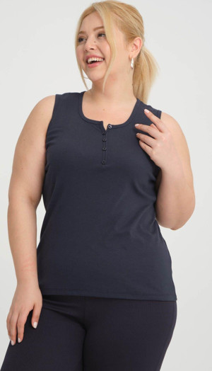 Büyük Beden Kolsuz Kalın Askılı Pamuk Penye Bisklet Yaka Lacivert Bluz Atlet