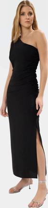Bu çarpıcı elbise, rahatlığı ve şıklığı bir araya getiriyor. Nefes alan soft krep kumaş yapısıyla gün boyu konforlu hissetmenizi sağlar. Vücudu saran kesimi ve bodycon kalıbıyla kusursuz bir silüet oluştururken, tek omuz ve kolsuz tasarımı ile feminen ve modern bir tarzı buluşturuyor. Asimetrik yakası ve yan yırtmaç detayı ile elbiseye ayrı bir hava katılıyor. Bakımının kolaylığı ise pratik kullanım sağlar makinede yıkanabilir.