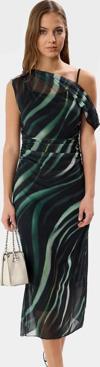 Bodycon Midi Tül Elbise Şık Asimetrik Yaka ve Çiçek Desen Uzun Ömürlü Özenle Seçilmiş