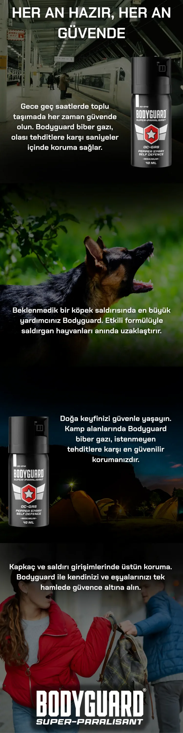 Bodyguard BG-0150 modeli, profesyonel formülasyonu sayesinde maksimum caydırıcılık ve güvenli kullanım sunar.