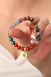 Boğa burcu doğaltaş bilekliği Kyanit, Krizopraz, Malakit, Akik ve Florit taşlarından oluşmaktadır.