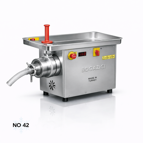 Yüksek Kapasite ile Endüstriyel PerformansNo 42 kafa yapısı ve 5,5 kW / 7,4 hp güçlü motor sistemi ile büyük miktarda eti kısa sürede işleyebilir. Seri üretim yapan işletmeler için ideal olan bu model, zamandan tasarruf sağlar ve üretim kapasitesini artırır.