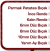 · 6,8,10 mm düz, ay dilim, parmak patates bıçağıyla birlikte ince ve kalın rende.