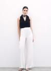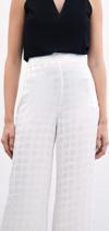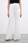 Yüksek bel , yan fermuarlı, geniş paça, kare desenli salaş pantolon.