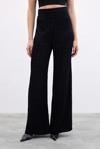 Yüksek bel , yan fermuarlı, geniş paça, kare desenli salaş pantolon.