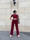 Otkokusu Püskül Detaylı Ajurlu Triko Takım -BORDO