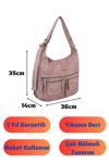 Vivaq Kadın Torba Krem Kırışık Suni Deri Büyük Boy Fermuar Kapama El Kol Ve Omuz Çantası