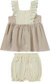 Kız Bebek Şortlu Takım 6-18 Ay Pudra