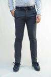 Rahatlık ve şıklığı bir arada sunan lacivert renkli slim lıkralı pamuk petek desenli pantolon, günlük kullanım için idealdir.