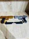 PeriYedi Boncuklu Altın ve Gümüş Renk Boncuk Atan Silah 2 Adet + 2 Adet 9 cm Hedef + 21 Paket Boncuk