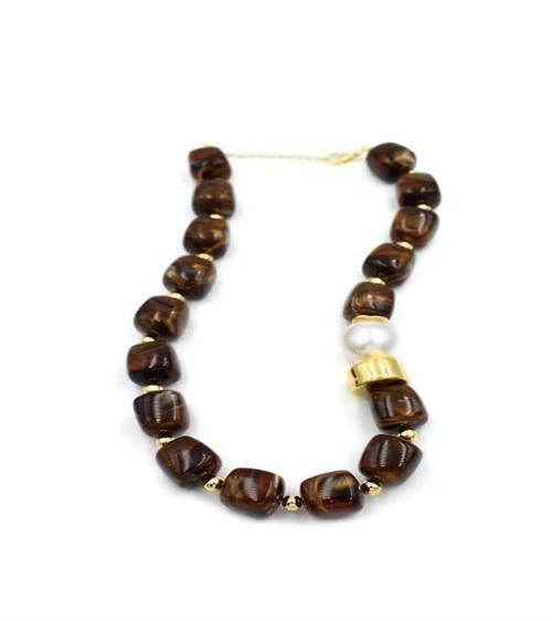 Boncuklu İnci Kolye - Kahverengi