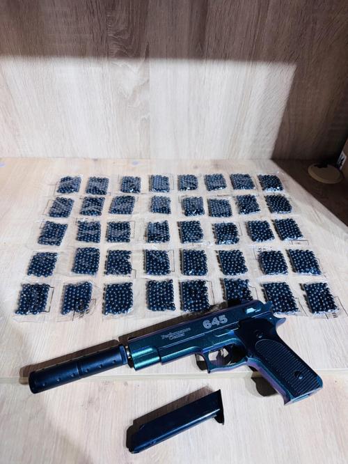 Plastikve Metal.Tabanca, gerçek bir tabanca gibi, metal ve kaliteli plastikten yapılmıştır, bu da onu dayanıklı kılar. 20 metreye kadar önemli bir mesafeden 6-8 mm plastik (top) fırlatır