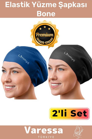 Premium Seri Renkli Slikon Sızıdırmaz Su Geçirmez Elastik Yüzme Bonesi 2 Renkli Set