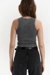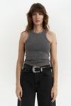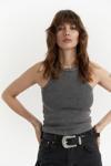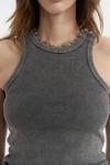 Soldurma efektli boyalı pamuklu, halter yaka, kolsuz, normal boy fitilli crop atlet.