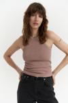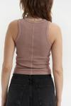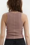 Soldurma efektli boyalı pamuklu, halter yaka, kolsuz, normal boy fitilli crop atlet.