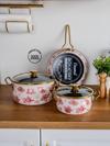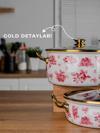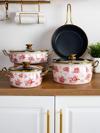 Lilium Emaye 7 Parça Pembe Gül Desenli Tencere Tava Set