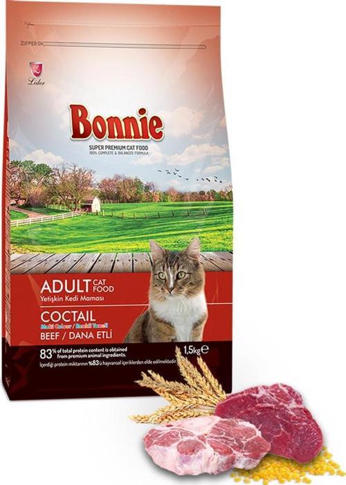 Bonnie Renkli Taneli Dana Etli Yetişkin Kedi Maması 1,5 Kg