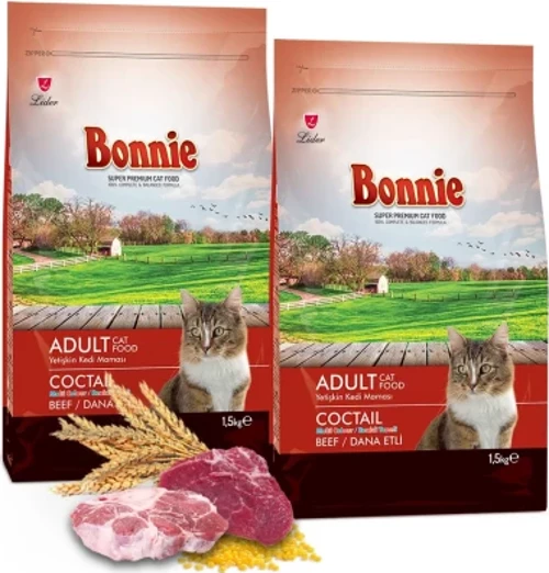 Bonnie Renkli Taneli Dana Etli Yetişkin Kedi Maması 1,5 Kg x 2 Adet