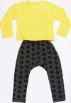 2 parça kız çocuk pantolon ve t-shirt takım. Uzun kollu, pamuklu, penye, baskılı t-shirt. Ve takımın tamamlayıcısı düşük ağ kesimli, harem tarzı, yıldız baskılı pamuklu eşofman altı.