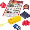 Her pakette bir adet Rampa, bir adet Hedef Tahtası, beş Varil, ışıklı sesli Fırlatıcı ve bir adet ön kaldıran Araba ile aksiyon için gereken her şey tamam!