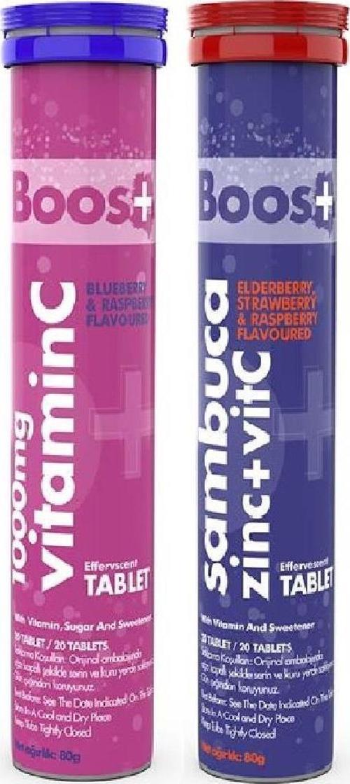 BOOS+ 2 Lİ SET YABANMERSİNİ&AHUDUDULU VİTAMİN C /KARAMÜRVERLİ ÇİNKO + VİTAMİN C EFERVESAN 40 TAB.
